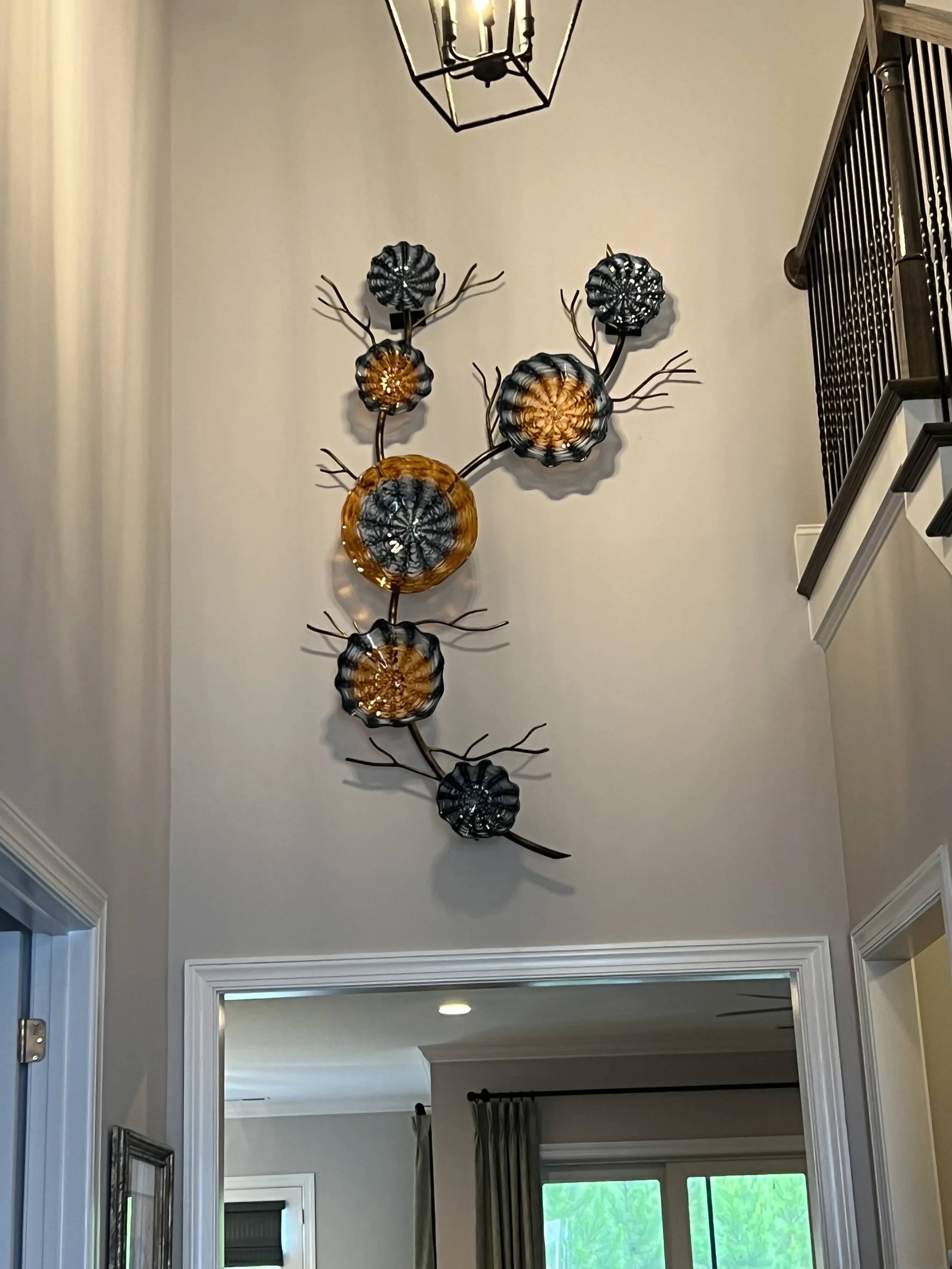 The Art and Science Council commissioned seven light pendants to be on display inside the lobby of their building. These pieces were inspired the organic shapes and colors of the natural World.