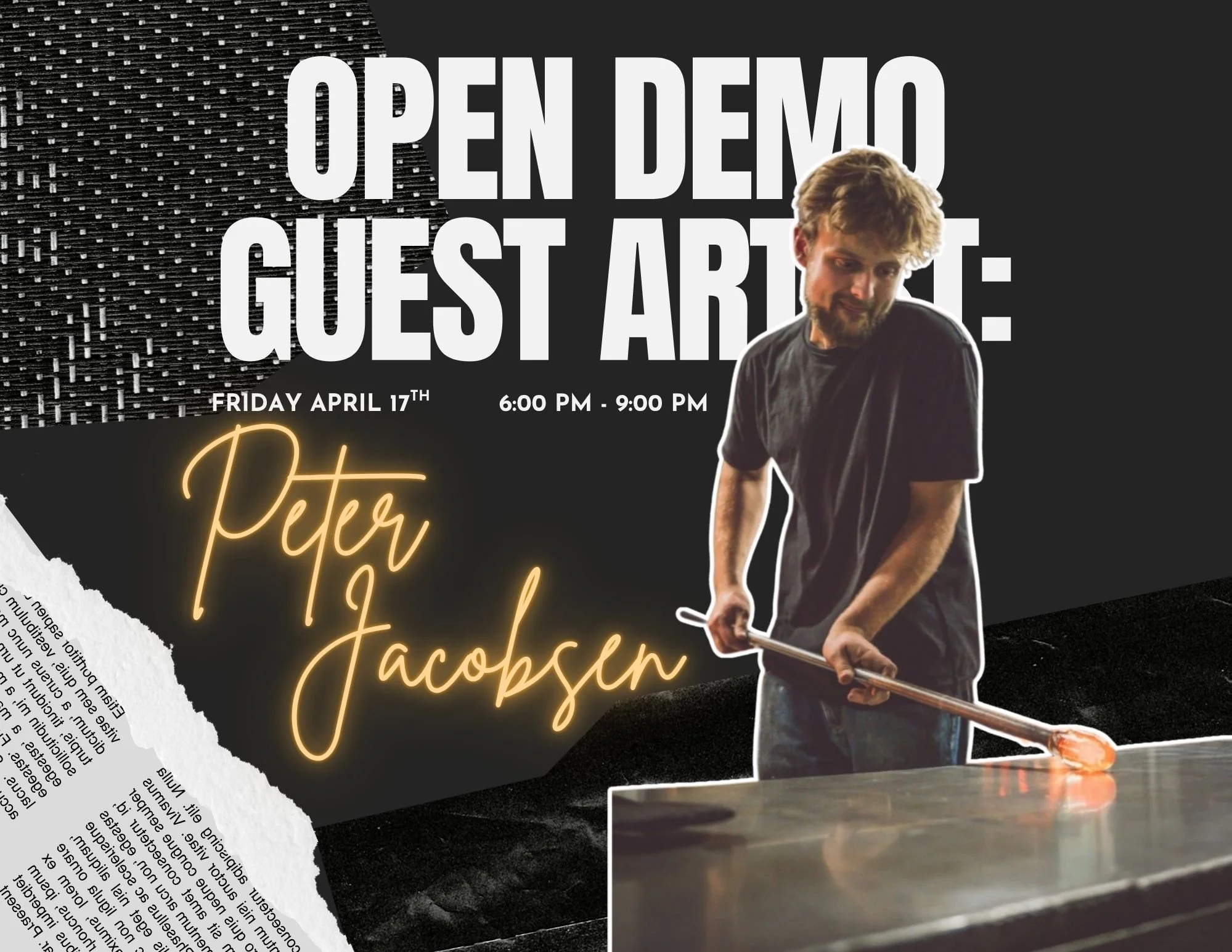 Join us for a live glassblowing demonstration @ 6-9 PM where our hot shop team will assist Jacobsen in making 1-2 sculptural pieces in front of a live audience! Snack and beverages are provided with no reservation or ticket necessary for entry.